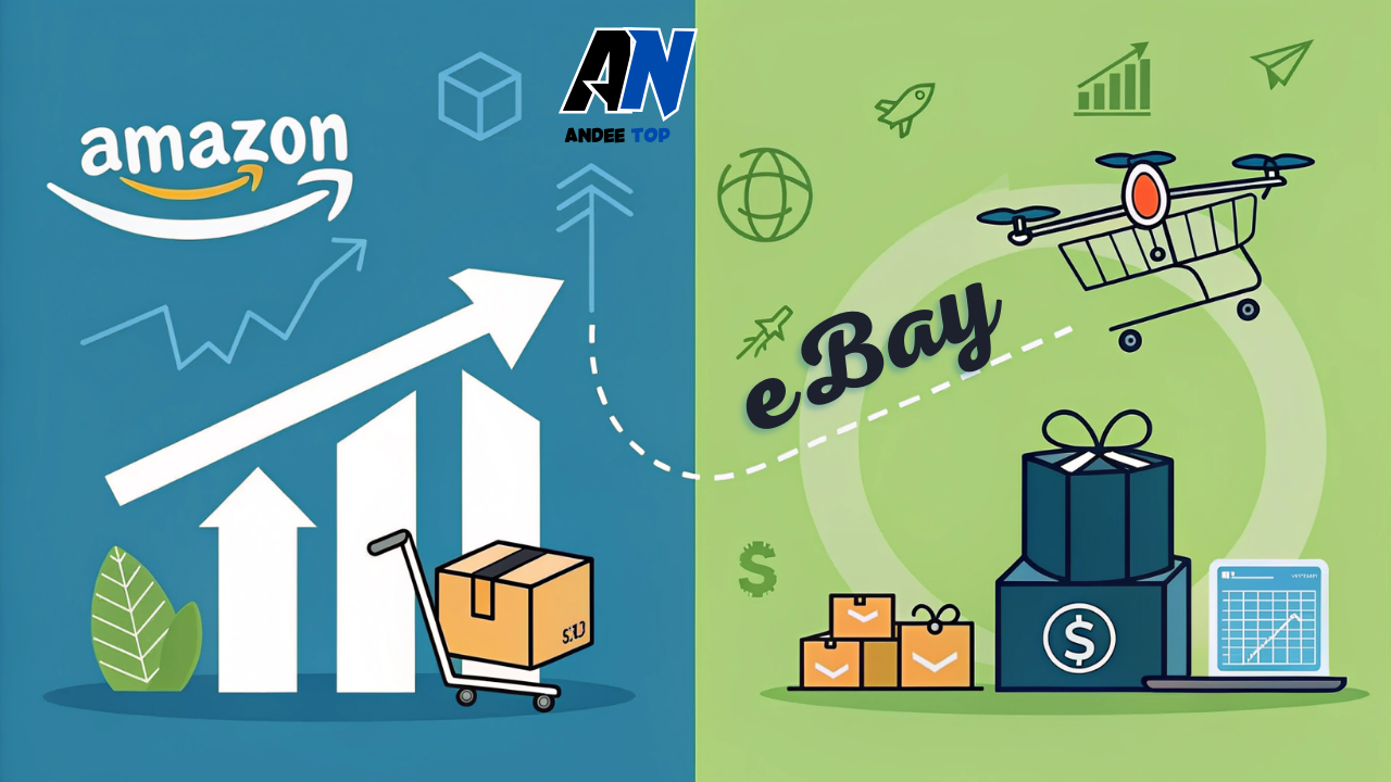 أمازون (Amazon) كنموذج للنجاح المستمر والتوسع، و إيباي (eBay) كمتجر عريق يواجه تحديات وتعثرات في مواكبة العصر.